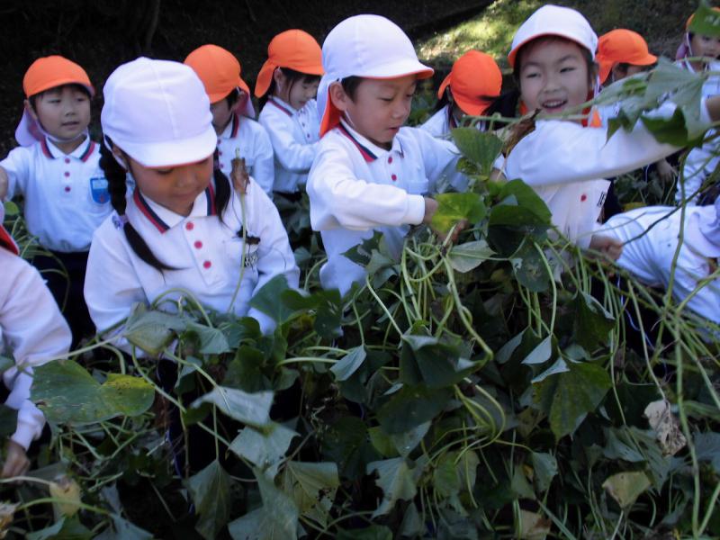 とても大きな芋がかくれていて、なかなか掘れないお友達もいましたね。