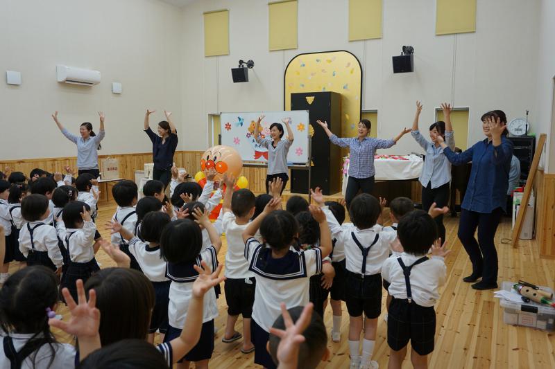 次は、アンパンマンの♪サンサン体操♪をおどりました。 可愛く体を動かしていましたね。