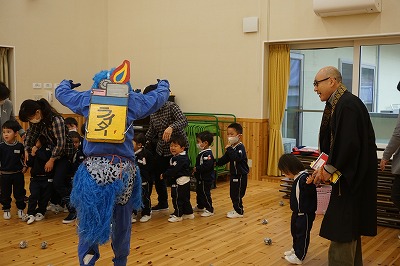 本日、府中町消防署の方に来て頂き【幼年消防クラブ豆まき大会】を行いました。