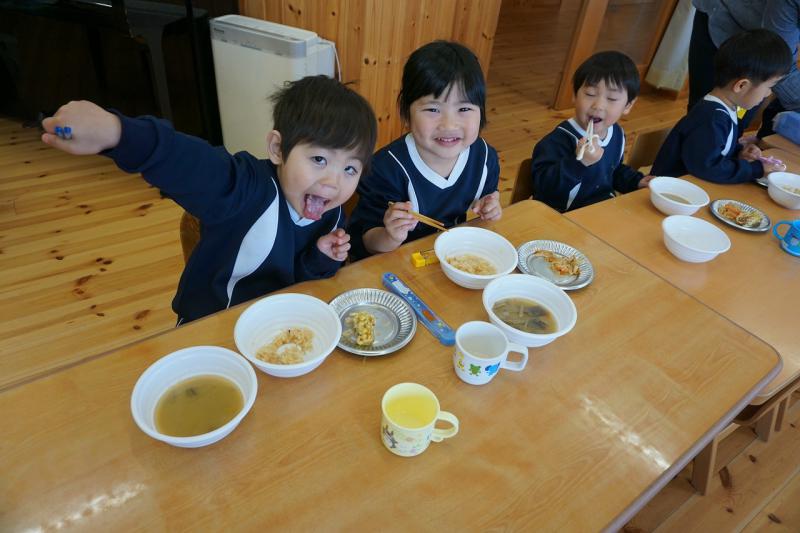 年長さんは最後のお楽しみ給食でした。だんだんと「最後」が増えていくのがちょっぴりさみしいですね。