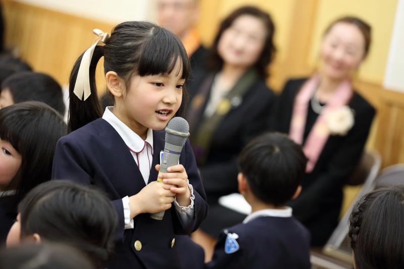 その後、幼稚園で楽しかったこと、伝えたいことを一人一人お父さんお母さんの方を向いて発表しました。