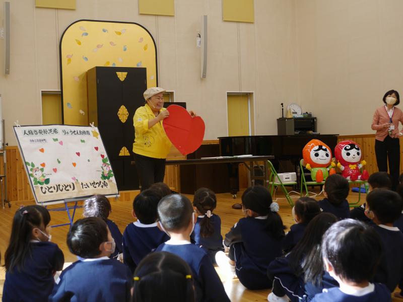 11月16日に講師の中村由利江先生と府中町人権推進室・人権擁護委員の方に来て頂き、人権紙芝居と命の大切さについてお話して頂きました。
