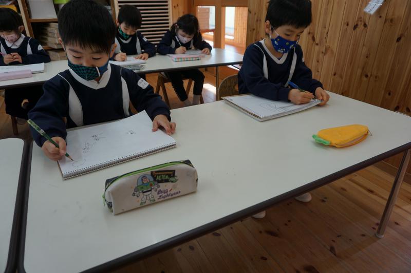 「今日は何を描こうかな~」「動物園の絵にしよう!」などとつぶやきながら自由に好きな絵を描きました。