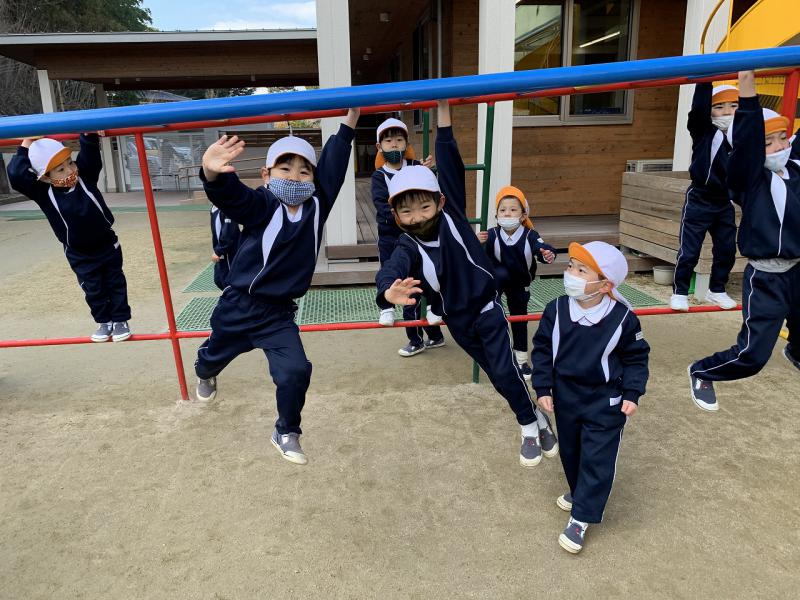 最近では年長さんが縄跳びをして遊んでいる姿を見て、「私もやってみよう!」「僕もできるかな」と憧れているようで、縄跳びに挑戦する姿が見られるようになりました。