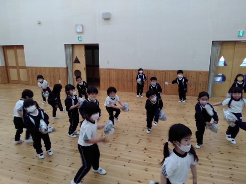 じゃんけんゲームや、自由にちぎったり、ボールを作って遊んだり。