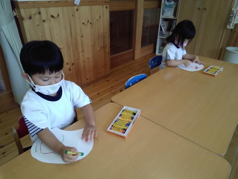 お父さんの顔を思い浮かべながら絵を描いたり、折り紙を貼ったり、