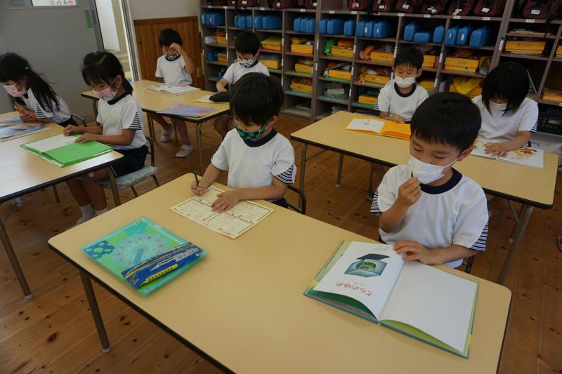 年長になってからは、図書室から好きな絵本を持って来て朝読書をしたり、読み終えた後は、楽しかったところや自分の気付いたことなど、ひと言感想を書いています。