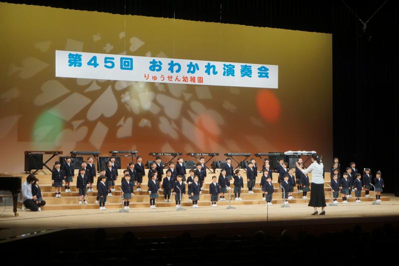 年長組は最後の演奏会。ドラム演奏、合唱、木琴奏。