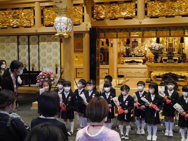 園長先生から一人一人に卒園証書を頂き、おわかれ演奏会で歌った「いのちの歌」を披露しました。