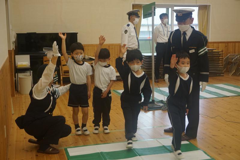 横断歩道の渡り方、車に乗ったらシートベルトをつけること、車から降りる時は一人で降りないこと、駐車場では大人と手を繋ぐこと、バックしてくる車のそばには行かないことなど、