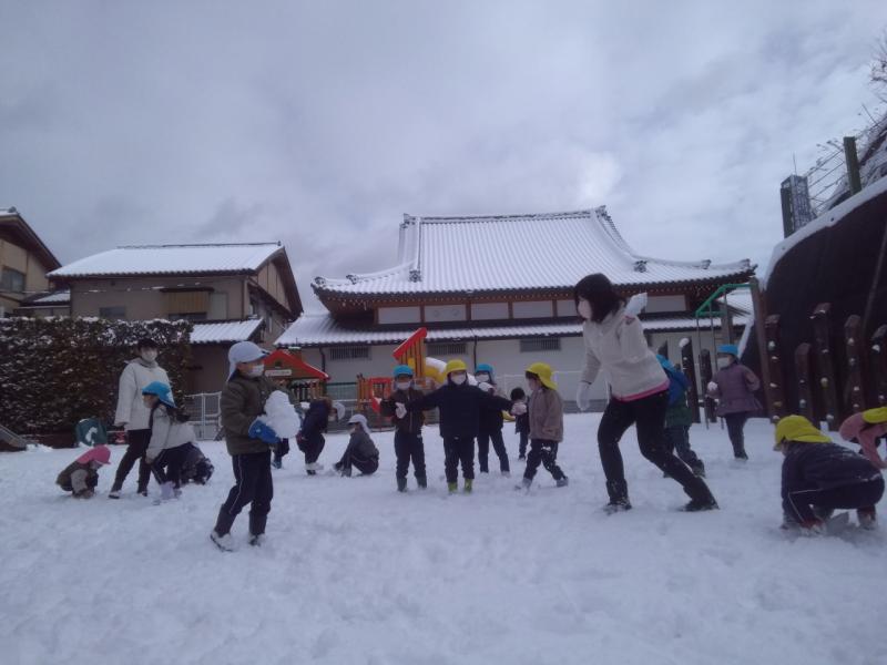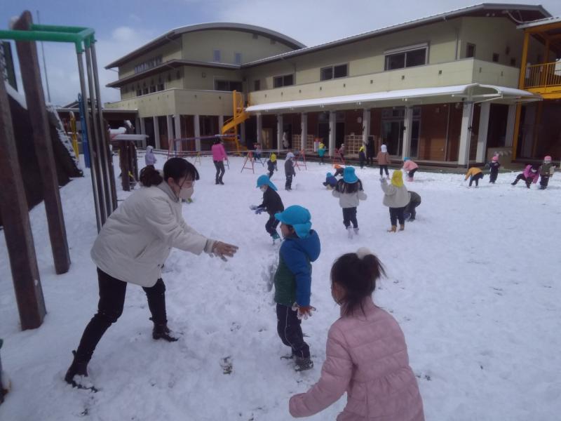 お友達や先生と雪合戦をしたり、雪だるまを作ったり…