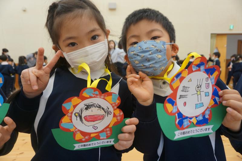 卒園児へのプレゼント。年少さんからは可愛いペンダントです。