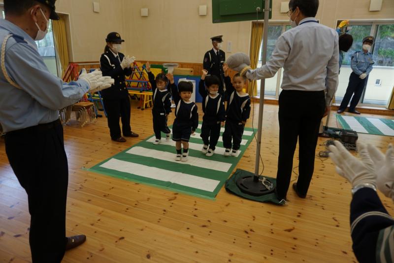 横断歩道を渡るお手本を見せて頂いて、その後みんなも自分で信号を見て横断歩道を渡りました。