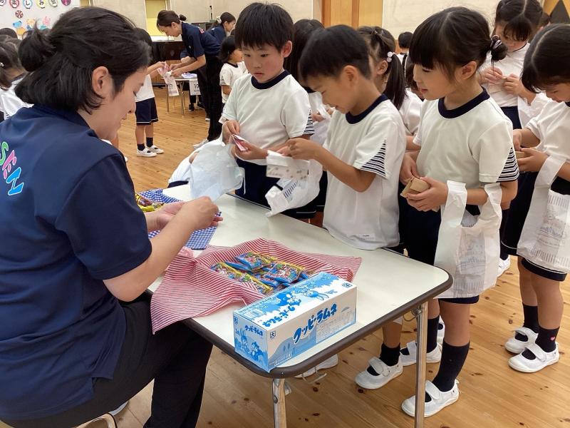 「どれ買おうかなあ…」「このチョコ2つ買ったんだよ~!」と自分たちで考えながら好きな駄菓子を買いました。