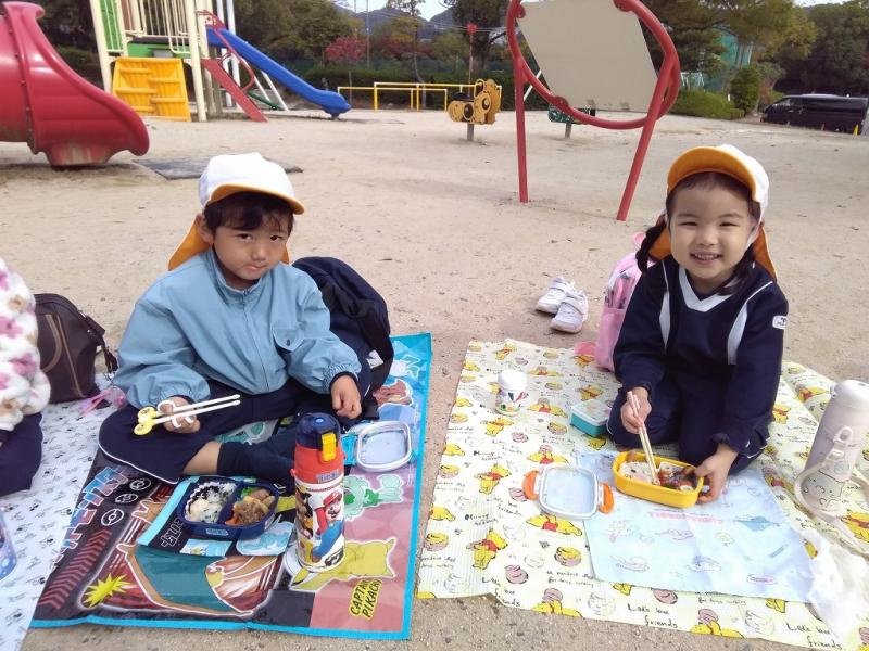 外でみんなと食べるお弁当、おいしかったですね。